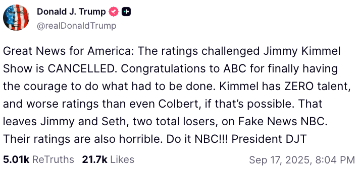 Hoy, la congresista Verónica Escobar emitió una declaración sobre la suspensión indefinida del programa Jimmy Kimmel Live.
